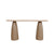 Arthur Console is a contemporary masterpiece that blends elegance with functionality. Crafted from Rose wood, this console features a sleek design that adds a modern touch to any decor. The console's standout feature is its smooth tavertine marble top, providing a glamorous contrast to the bold conical legs. The ample surface area offers a perfect platform for decorative items or everyday essentials. Its unique silhouette, with two wide pillar legs and a narrow rectangular top, complements various design tastes.