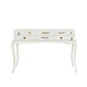 Accentuated in crisp chalk finish and gracefully curved legs, our Delphi side table exhibits an authentic french profile perfect for an elegant display. The single drawer latched with gold accented handles brings a glamorous touch to the furnishing piece.