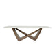 Crafted from solid wood, the table showcases a creative design. The construction incorporates a stable base and a clear glass countertop, blending modernity with sophistication for a stunning addition to any contemporary home.