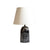 Handpainted Arcana Lamp featuring subtle white shading, with abstract white lines at the bottom, creating a striking visual contrast. The base is formed from Paulownia wood for a light yet durable structure, while the lampshade is composed of fabric, complemented by stainless steel