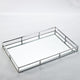 Featuring a modern stainless steel frame and glass base, this tray is designed with an elevated edge and durable construction for a sleek, contemporary look. Perfect for adding elegance to any room.