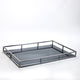 Featuring a modern stainless steel frame and mirror base, this tray is designed with an elevated edge and durable construction for a sleek, contemporary look. Perfect for adding elegance to any room.