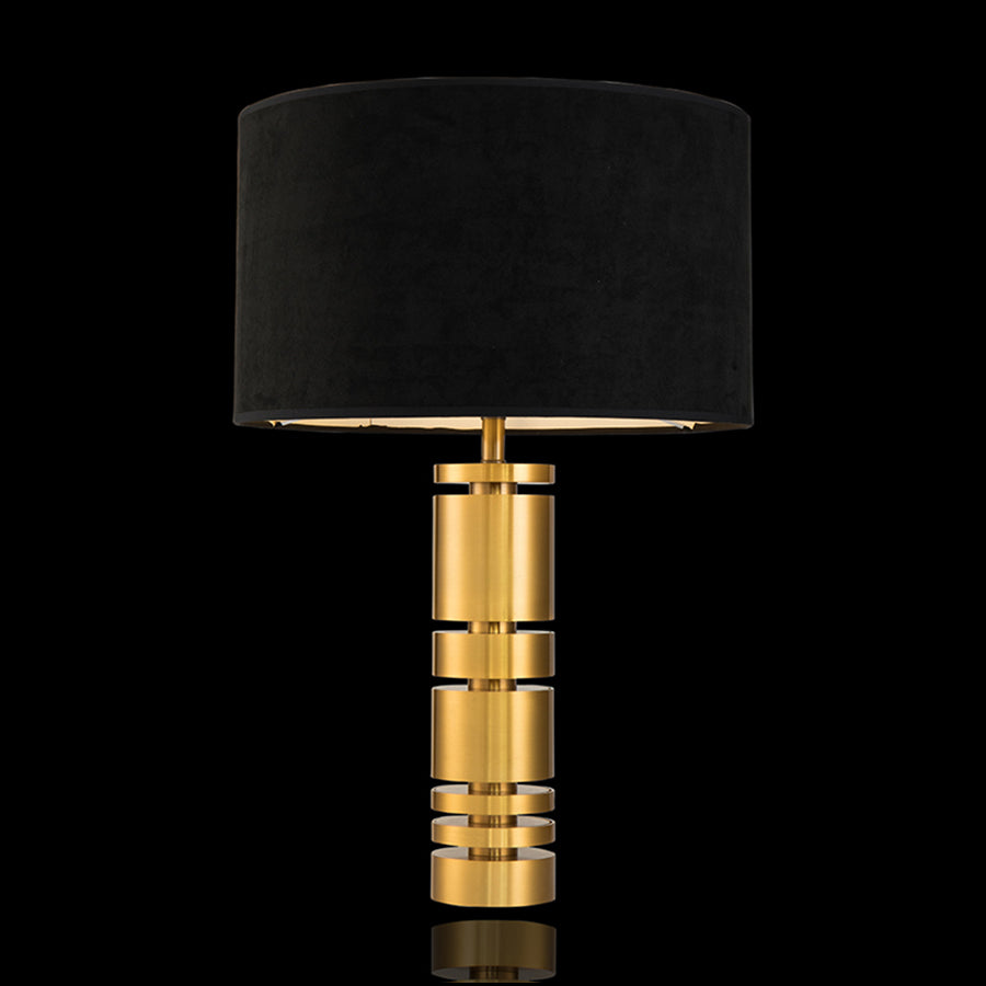 With its rich black cotton shade and gleaming brass-finished aluminium base, this Midnight Ray lamp adds warmth and elegance to any space. Its generous proportions make it a bold focal point while delivering ambient light perfect for living rooms, bedrooms, or offices.