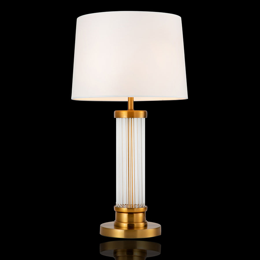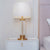 A timeless piece with modern charm, SnowGaze table lamp features a clean white fabric shade paired with a warm brass-finished base. The tall, structured form adds height and elegance, while the soft light creates an inviting ambiance. Perfect for corners that need a little polish and glow.