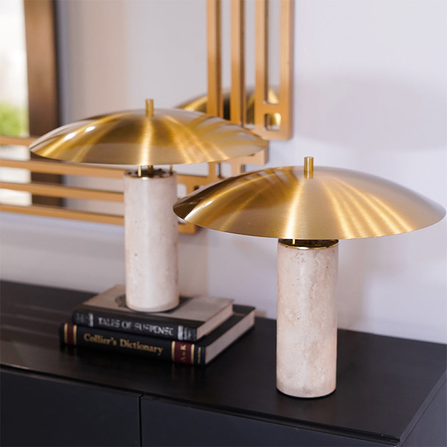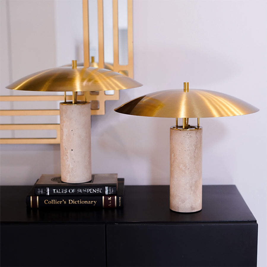 metal shade in bronze finish with travertine base,LED table lamp.iron shade in bronze finis with travertine base,LED table lamp.D40*D90*H35.5cm