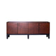 The Brizo TV console gives a contemporary appeal to the living room with it's fully uphoslstered solid oak wood finish. The brass legs add a sense of luxury to the design, and the exquisite marble top brings life to the design and adds extra texture.