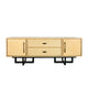 The timeless silhouette of our Delphi TV console harks back to an unforgettable era of the victorian age. The structure is coated with crisp chalk finish and has gracefully curved legs. The drawers are latched with designer handles and accented with gilded tones, bringing vintage glamour to the collection.
