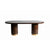 le The Oval-shaped, statement dining table is topped with high gloss finish & the natural oak-wood grain is highlighted throughout the piece. The legs are rimmed with a gold accent finish, adding to it's classical design.