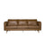 Clayton Saddle sofa hand-upholstered in leatherette, has a slim, distinct & edgy profile. The gold accent legs squarely braces the supremely plush seat.