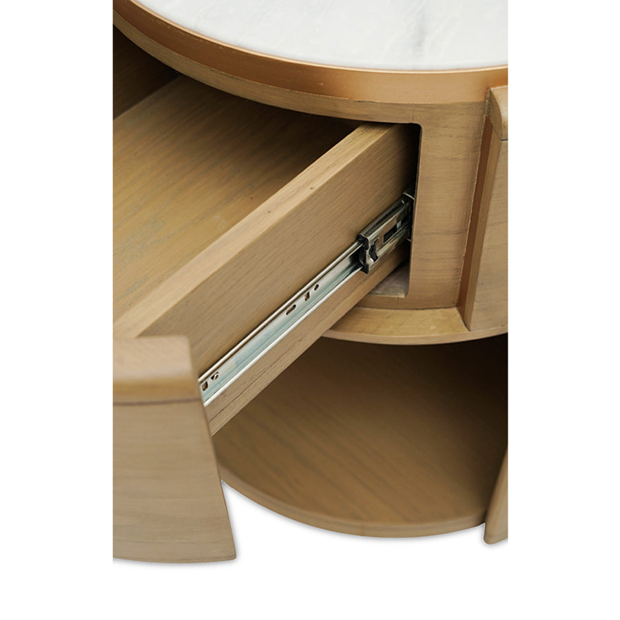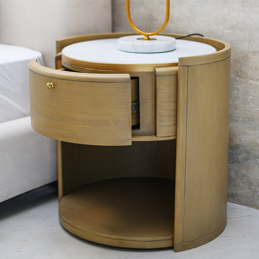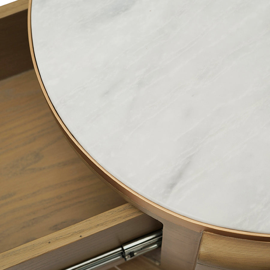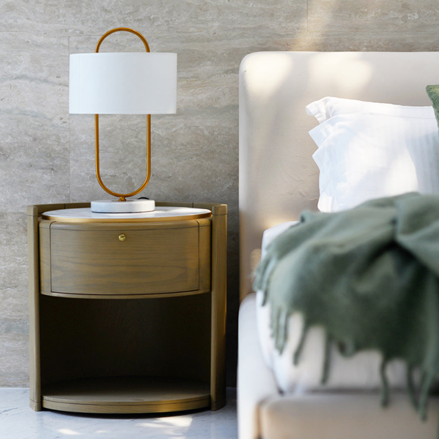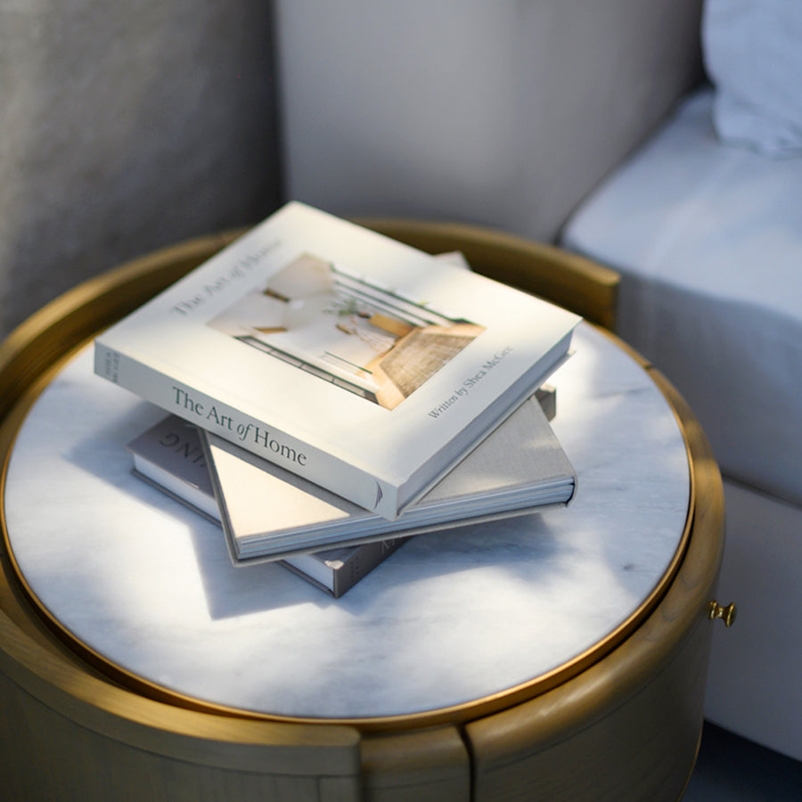 Softly grounded and thoughtfully composed, the Nova Side Table speaks through balance. Warm oak tones shape its unique architectural base, while a luminous Marble surface above offers a quiet place for life’s small essentials. Delicately edged in gold and finished in a light antique matte stain, Nova brings warmth and rhythm to a space.